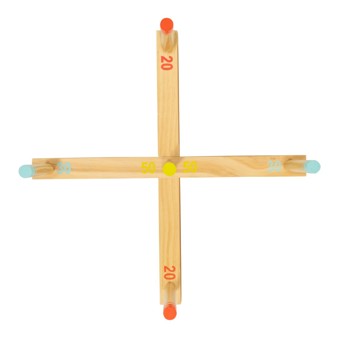 Säädä etäisyyttä: Jos pelaat lasten kanssa, voit lyhentää heittolinjan ja keppien välistä etäisyyttä, jotta peli olisi helpompaa.