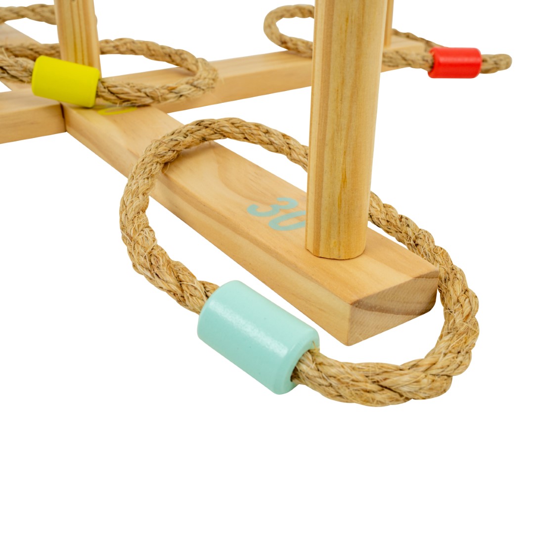 Rengaspeli on suunniteltu FSC®-sertifioidusta puusta, mikä tekee siitä sekä ympäristöystävällisen että kestävän. Puu on tunnettu kestävyydestään, ja materiaali luo esteettisesti miellyttävän ulkonäön, joka sopii erinomaisesti ulkotiloihin. Peliä on helppo kuljettaa ja säilyttää, joten se on käytännöllinen sekä pienissä että suurissa puutarhajuhlissa tai hauskana aktiviteettina retkeilyreissulla.