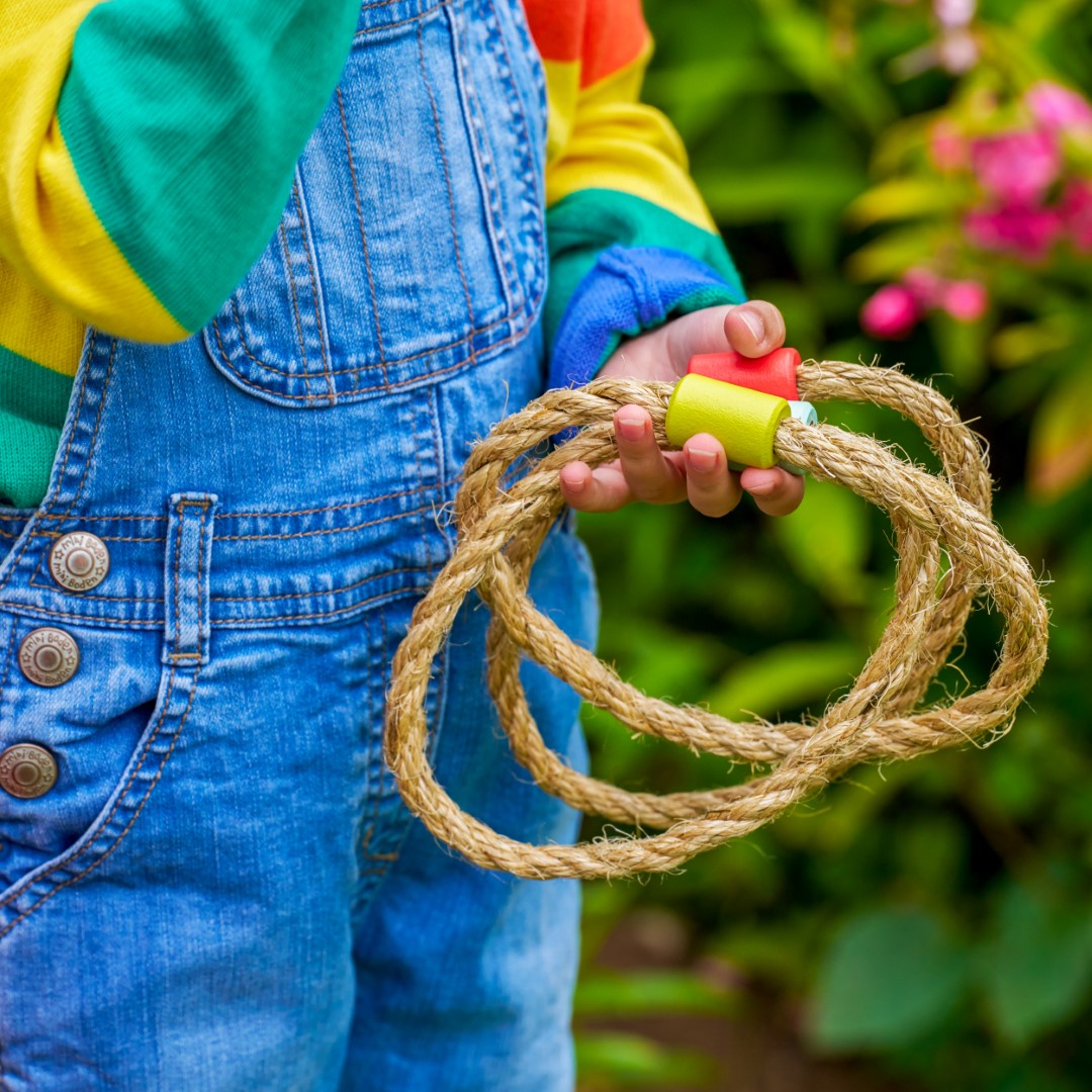 Sisältää: 5 värikästä keppiä alustassa, 5 värikästä köysirengasta