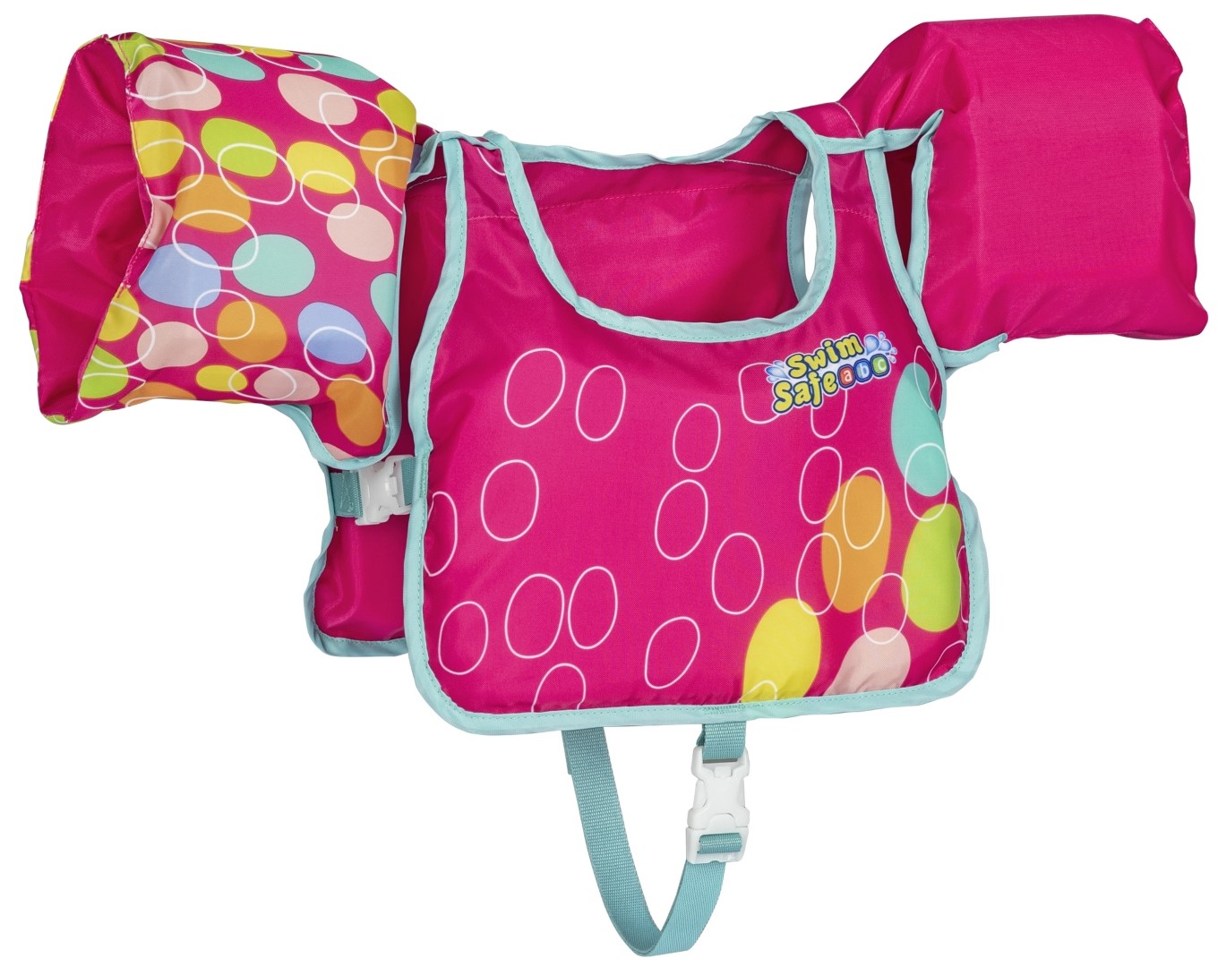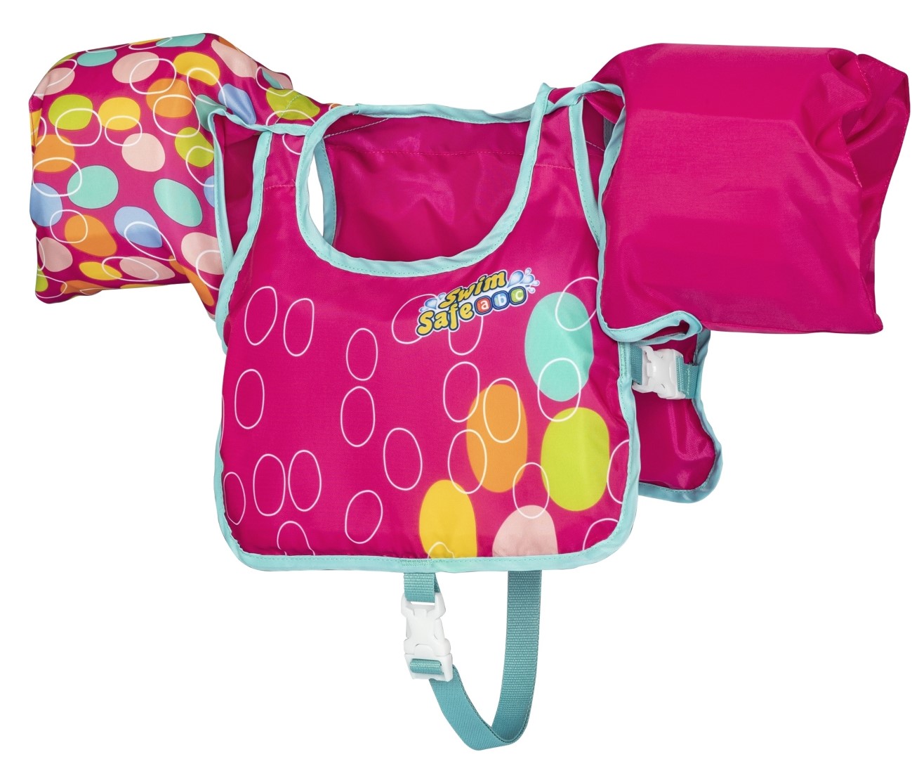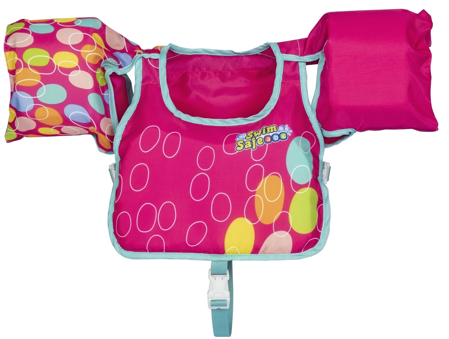 Swim Safe ABC™ AquaStar™ Fabric Kid Swim Pal antaa 3-6-vuotiaalle lapsellesi lisävapautta vedessä ja kasvattaa hänen uintivarmuuttaan! Swim Pal on uinnin harjoitteluliivi, jossa on kiinnitetyt käsivarsinauhat ja joka on valmistettu kestävästä ja mukavasta Oxford-kankaasta. Kirkkaissa väreissä ja hauskoissa, mielikuvituksellisissa grafiikoissa tämä Step B -uimaharjoitteluliivi tukee lastasi sisäänrakennetuilla vaahtomuovityynyillä, jotka takaavat tasapainoisen kelluvuuden, sekä säädettävillä soljilla ja hihnalla, jotka takaavat tiukan ja turvallisen istuvuuden. Kellukkeelliset käsivarsinauhat antavat lapsellesi lisävakautta, kun hän tottuu veteen, ja kankaassa on UPF 50+, joka auttaa estämään haitallisia UV-säteitä ja haalistumista.
