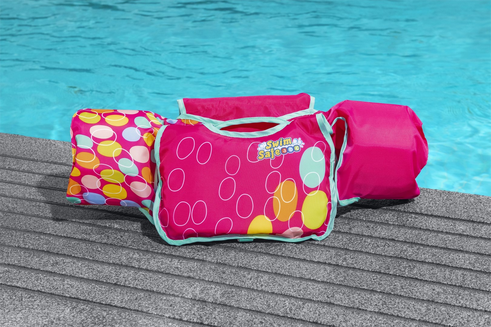 Bestway® Swim Safe ABC -vaiheohjelma alkaa Step A -luokan kellukkeilla, jotka on tarkoitettu vauvoille ja pikkulapsille, jotka tarvitsevat mahdollisimman paljon tukea. Step B -uimaliivit on tarkoitettu pikkulapsille, jotka alkavat saada itseluottamusta, mutta eivät vielä osaa uida yksin, ja Step C -uimaliivit on tarkoitettu lapsille, jotka alkavat oppia uinnin perusteita.