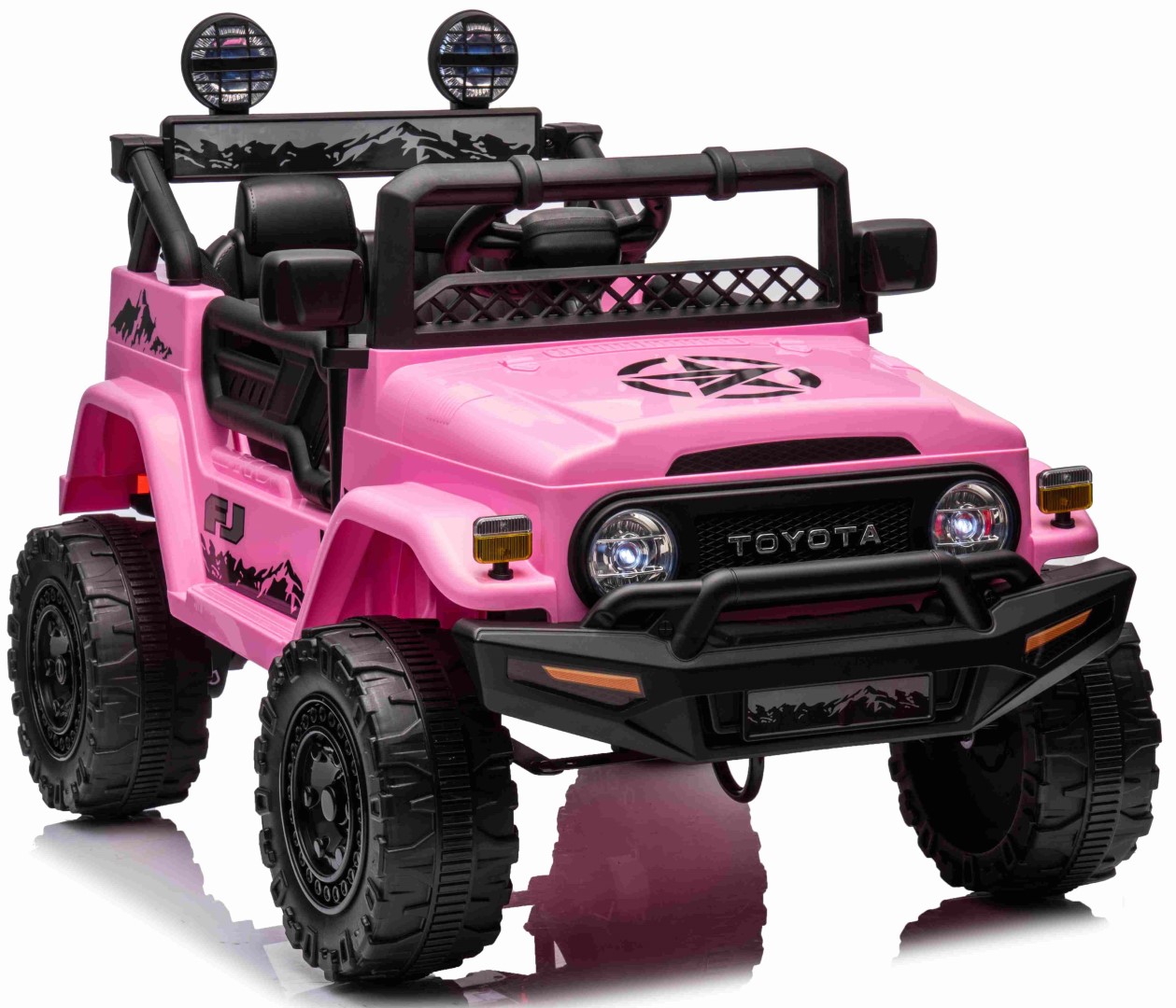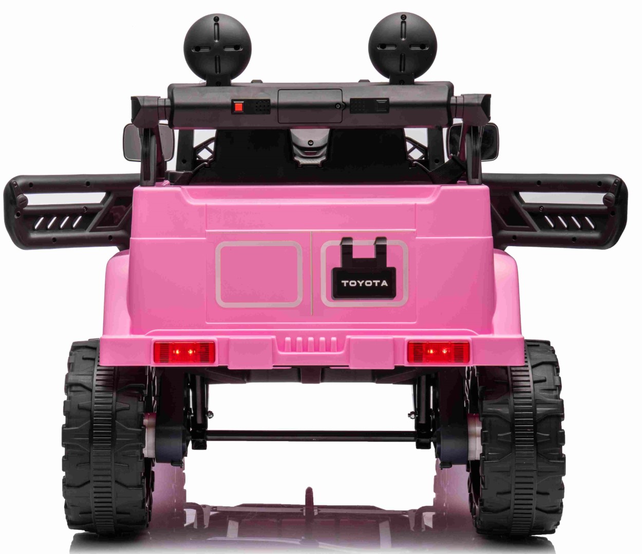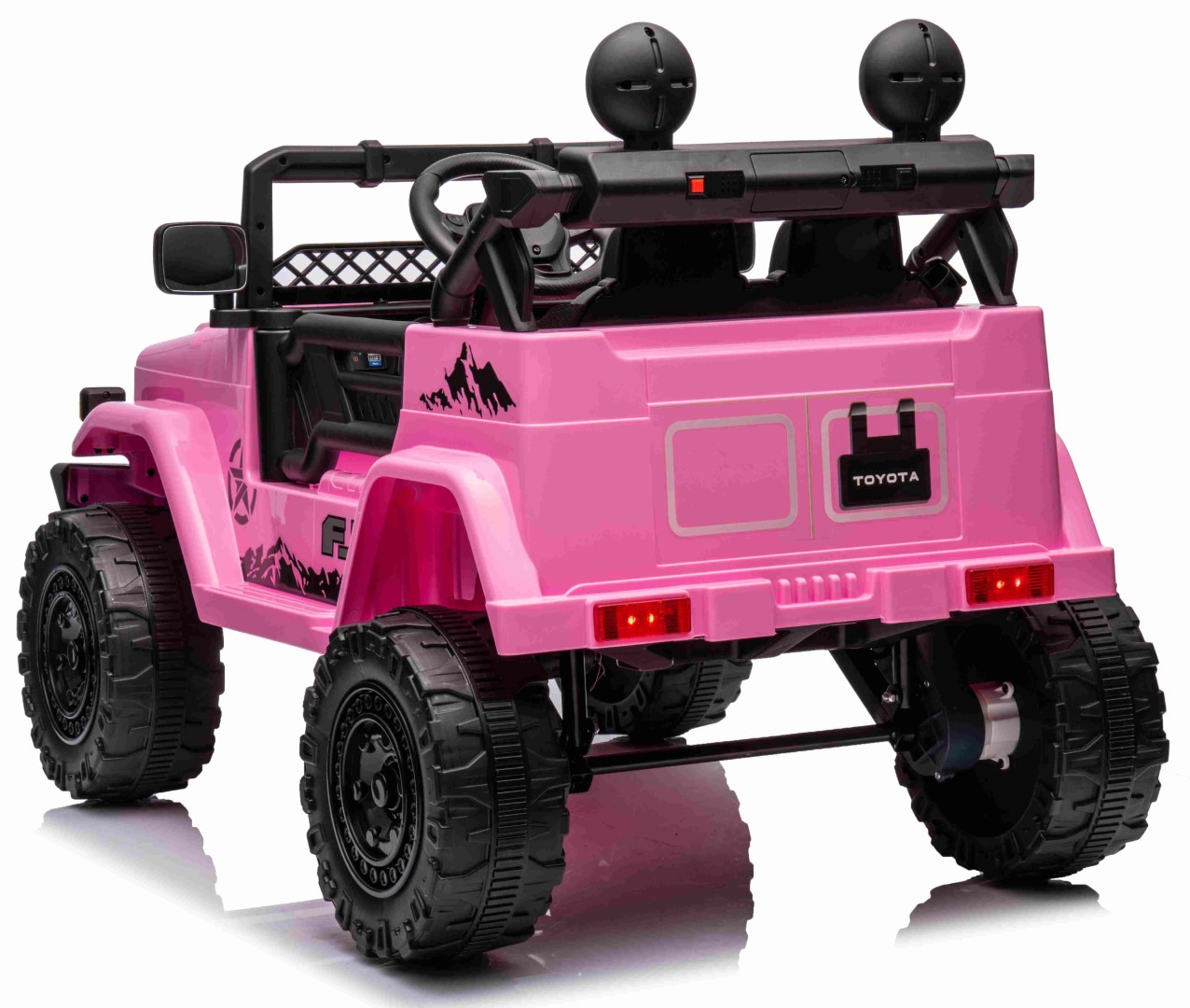 Toyota FJ Cruiser 2x12V-moottorilla, kumirenkailla ja nahkaistuimella on täydellinen ajokokemus pienille seikkailijoille. Tämä huolella ja yksityiskohtiin kiinnitetyllä huolellisuudella suunniteltu hurmaava sähköauto loistaa kauniissa vaaleanpunaisessa värissä, joka herättää välittömästi huomiota.