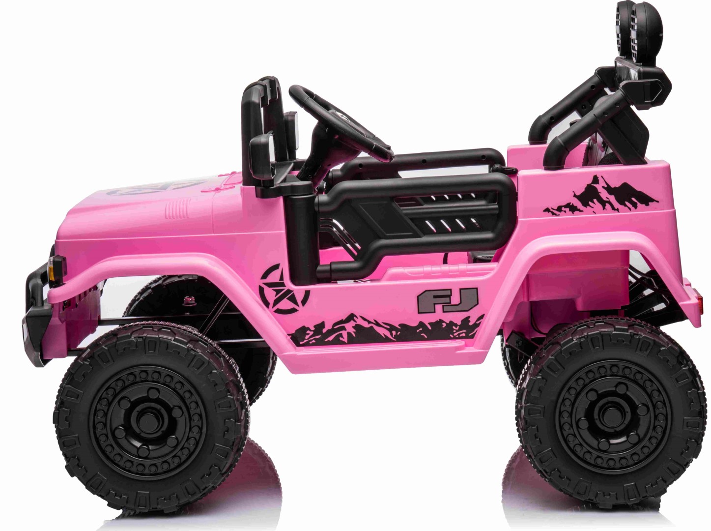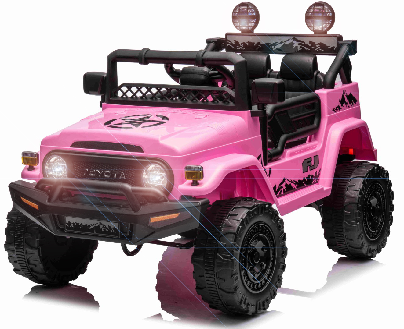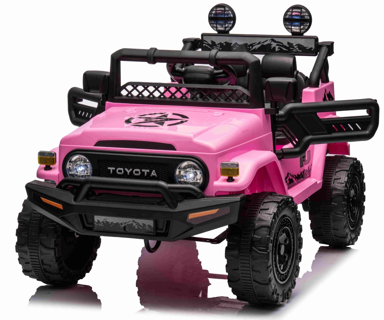 Toyota FJ Cruiser 2x12V-moottorilla, kumirenkailla ja nahkaistuimella on täydellinen ajokokemus pienille seikkailijoille. Tämä huolella ja yksityiskohtiin kiinnitetyllä huolellisuudella suunniteltu hurmaava sähköauto loistaa kauniissa vaaleanpunaisessa värissä, joka herättää välittömästi huomiota.