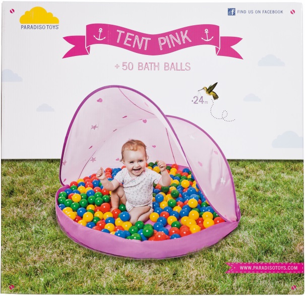 | Tyyppi: | Vaaleanpunainen leikkiteltta, 50 palloa |
