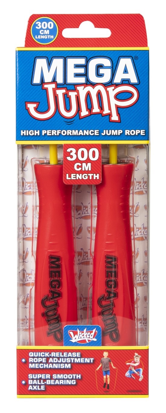 Hyppää kuin ammattilainen uudella Wicked Mega Jump -hyppynarulla! Olitpa sitten aloittelija tai edistynyt hyppynarun käyttäjä, erittäin tasainen pyöriminen on avainasemassa, ja siksi Mega Jumpissa on laadukkaat kuulalaakeroidut akselit, jotka takaavat erittäin silkkisen pehmeän pyörimisen. Hyppynarun on tietenkin ensin oltava oikean pituinen hyppääjälle, joten olemme tehneet siitä erittäin helpon säätää pituutta kullekin henkilölle sopivaksi erityisesti suunnitellun narun vapautusmekanismin ansiosta. Ota vain korkki pois, irrota kiinnike ja katkaise köysi, niin yksinkertaista se on!