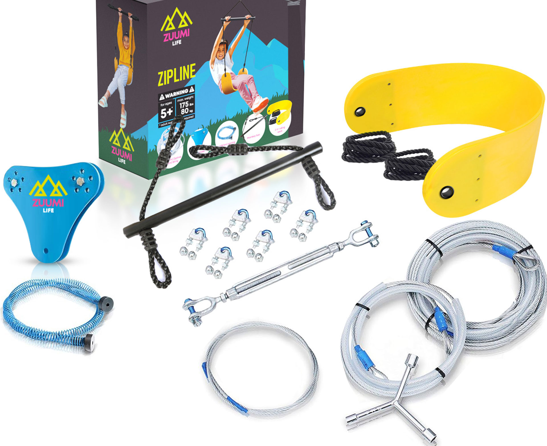 - Tunne olosi täysin turvalliseksi 30-metrisen galvanoidun teräsvaijerin ja 1,8-metrisen rihmavaijerin ansiosta, joka on suunniteltu käsittelemään kaikkea painoa ja vauhtia.